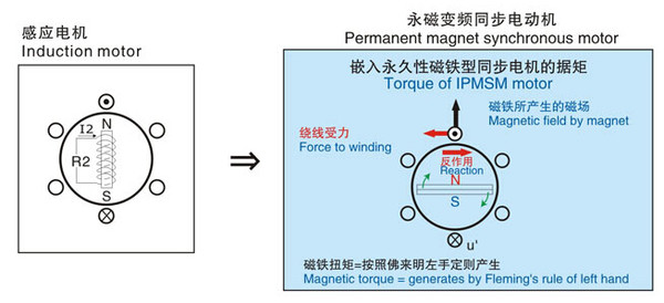 電動(dòng)機(jī)損失減半(與感應(yīng)電機(jī)相比)