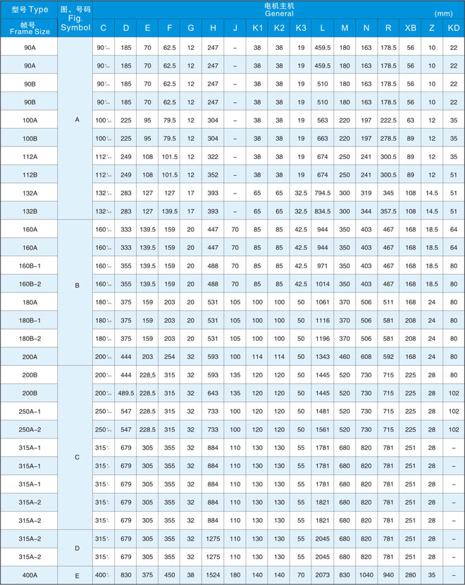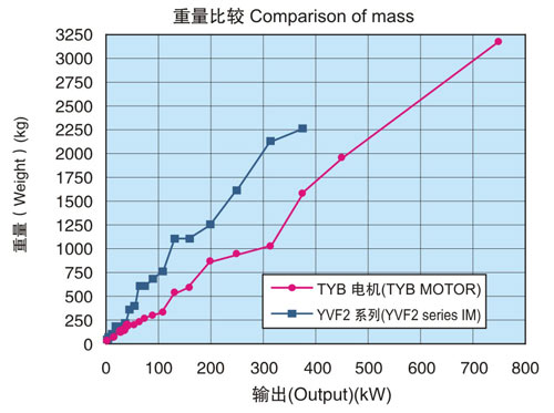 在同一輸出下中心高度比本公司YVF2系列變頻器專用IM下降2格。另外,電機(jī)重量也有大幅度減輕。(與本公司YVF2系列變壓器專用IM相比減輕32-57%